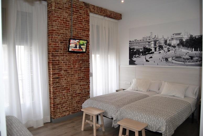 The single rooms of the hostal are ideal for resting in the centre of Madrid. They feature wide windows, well-cared cleaning service and furnishings, and they enjoy a bedroom with TV, heating and air conditioning, telephone, desk, safe, free Wi-Fi, private bathroom with shower or bathtub, hairdryer and amenities.